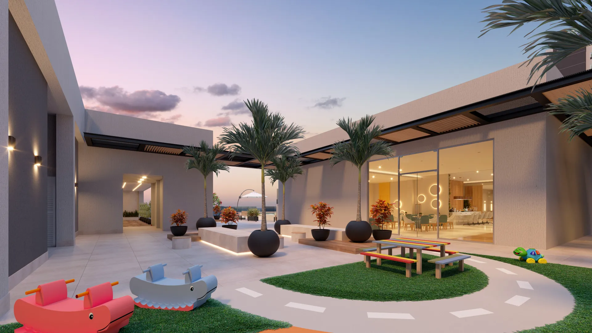 Área de lazer completa e espaços de convivência para todas as idades